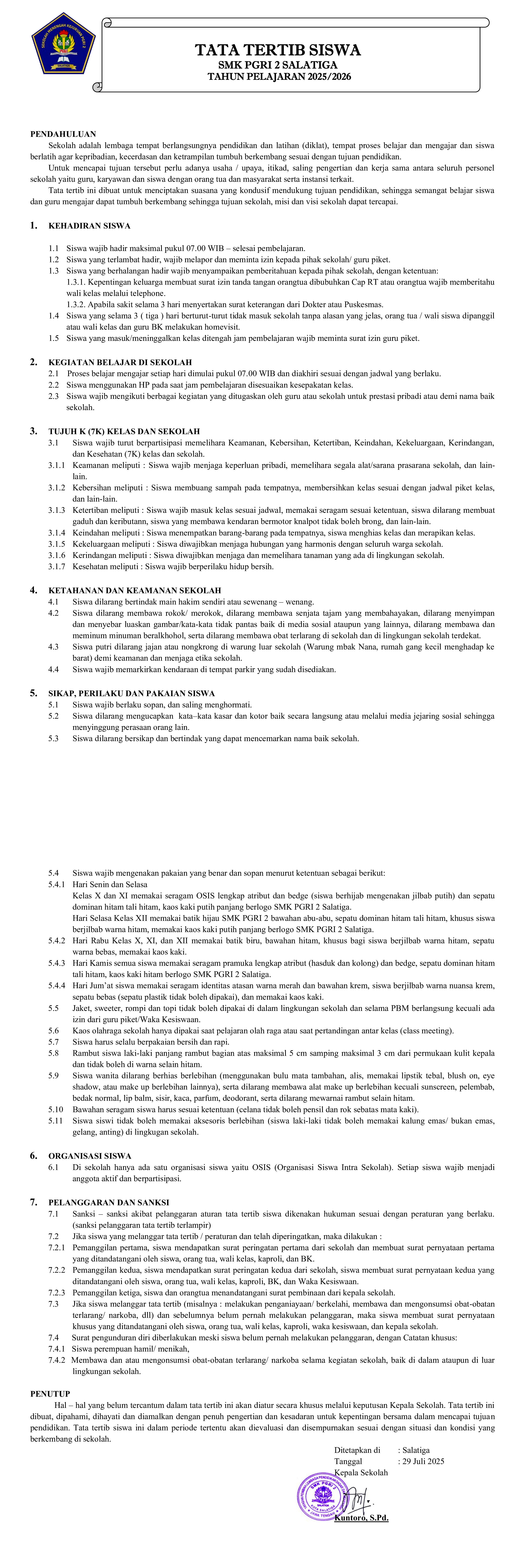Tata Tertib Peserta Didik